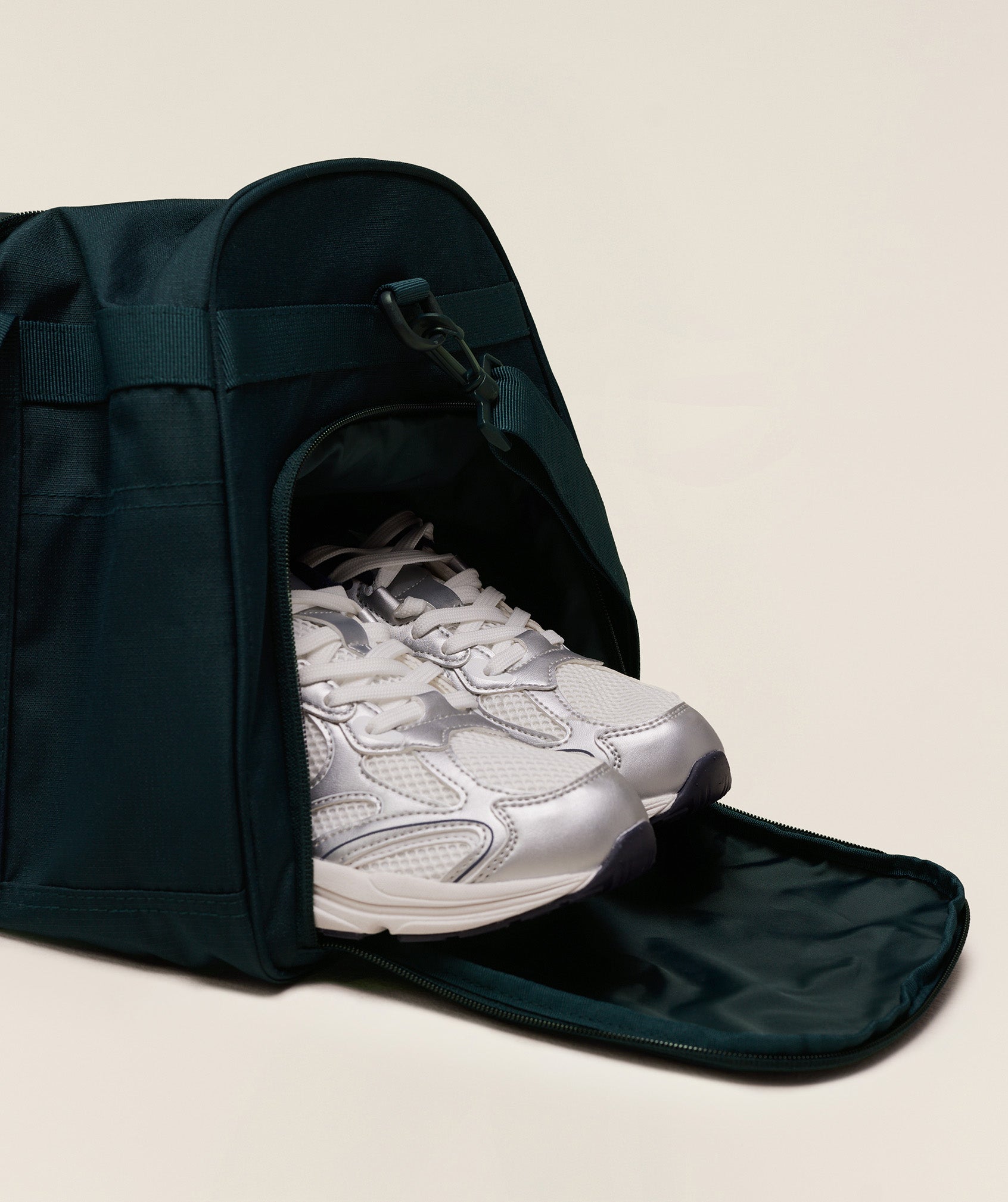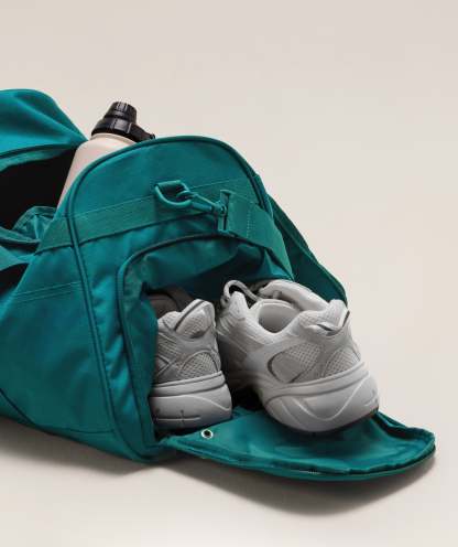 • External shoe pocket / wet pocket with breathable eyelets to keep things fresh