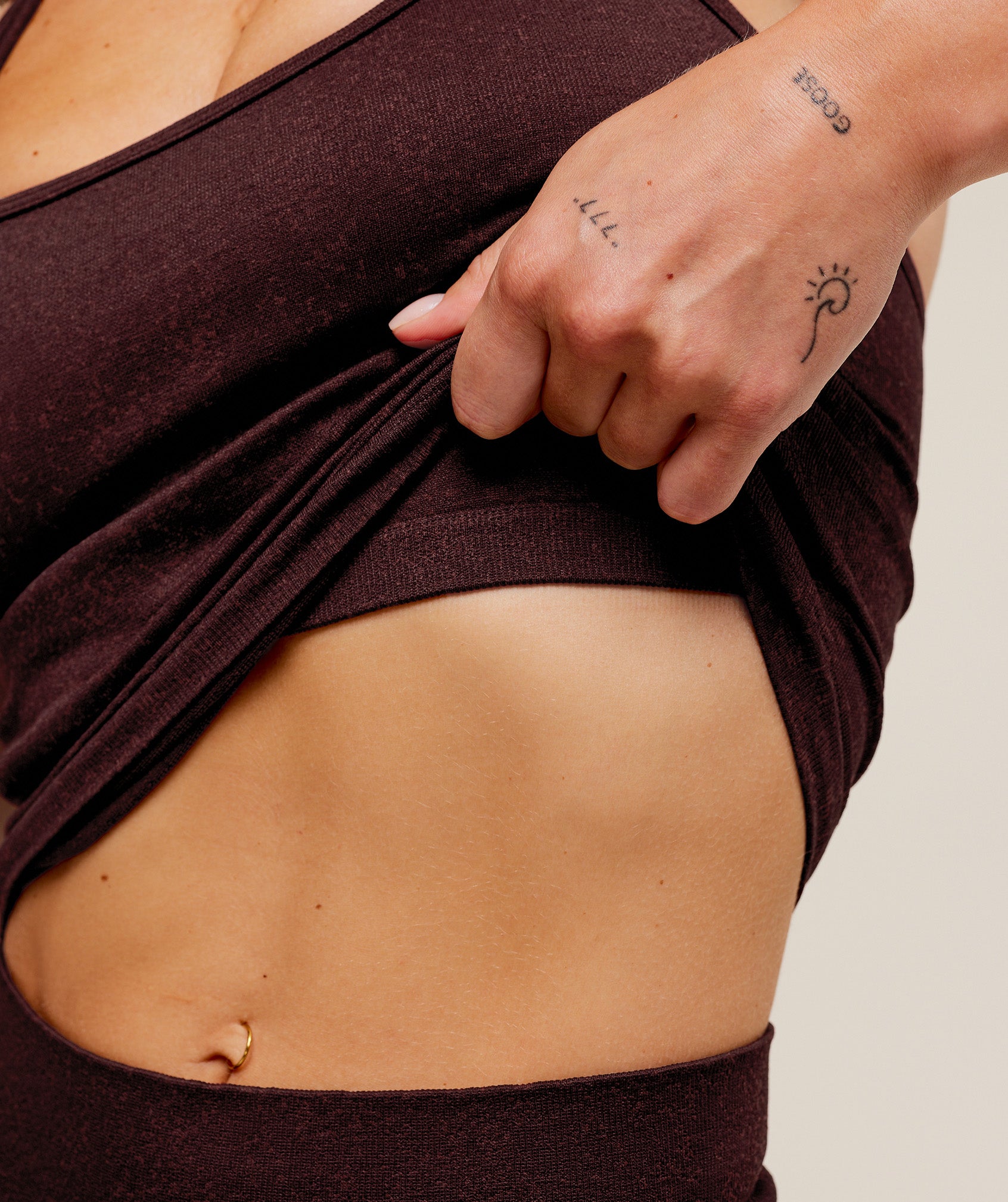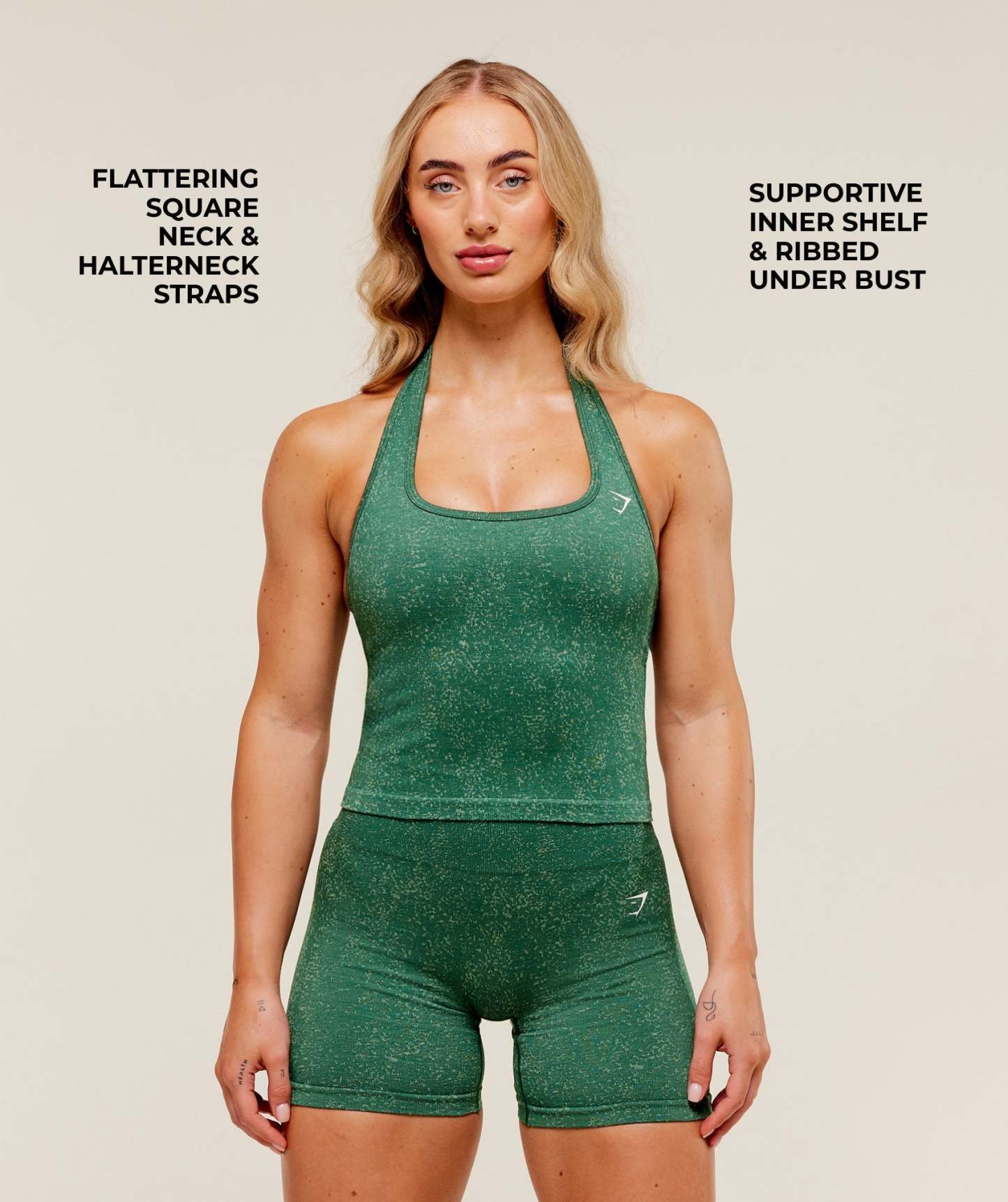 - Internal shelf bra and ribbed hem under the bust for a little extra support