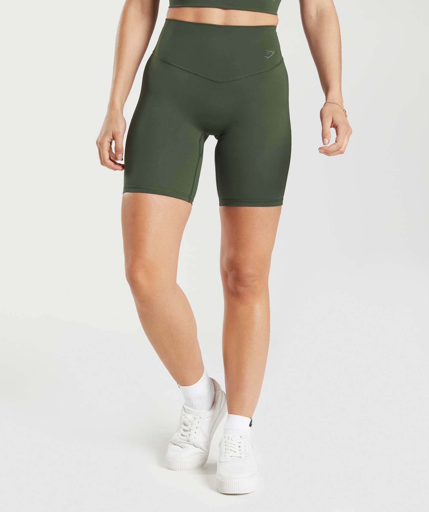 - gymsththark heatseal logo to left side of waistband as worn