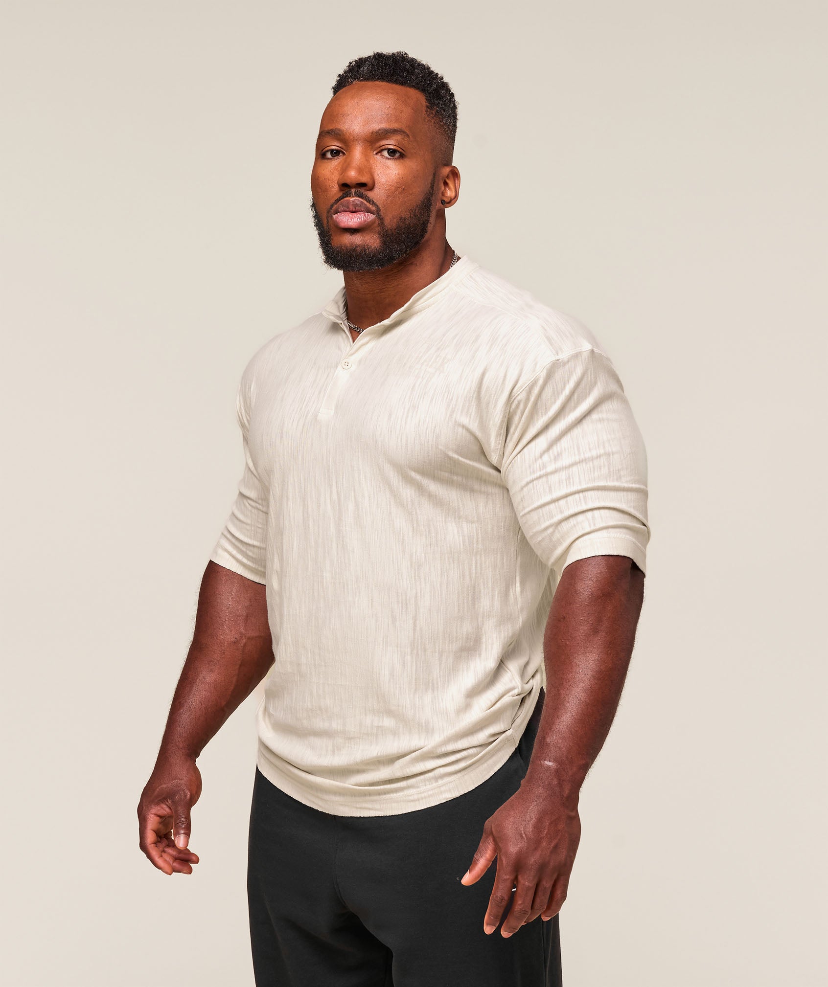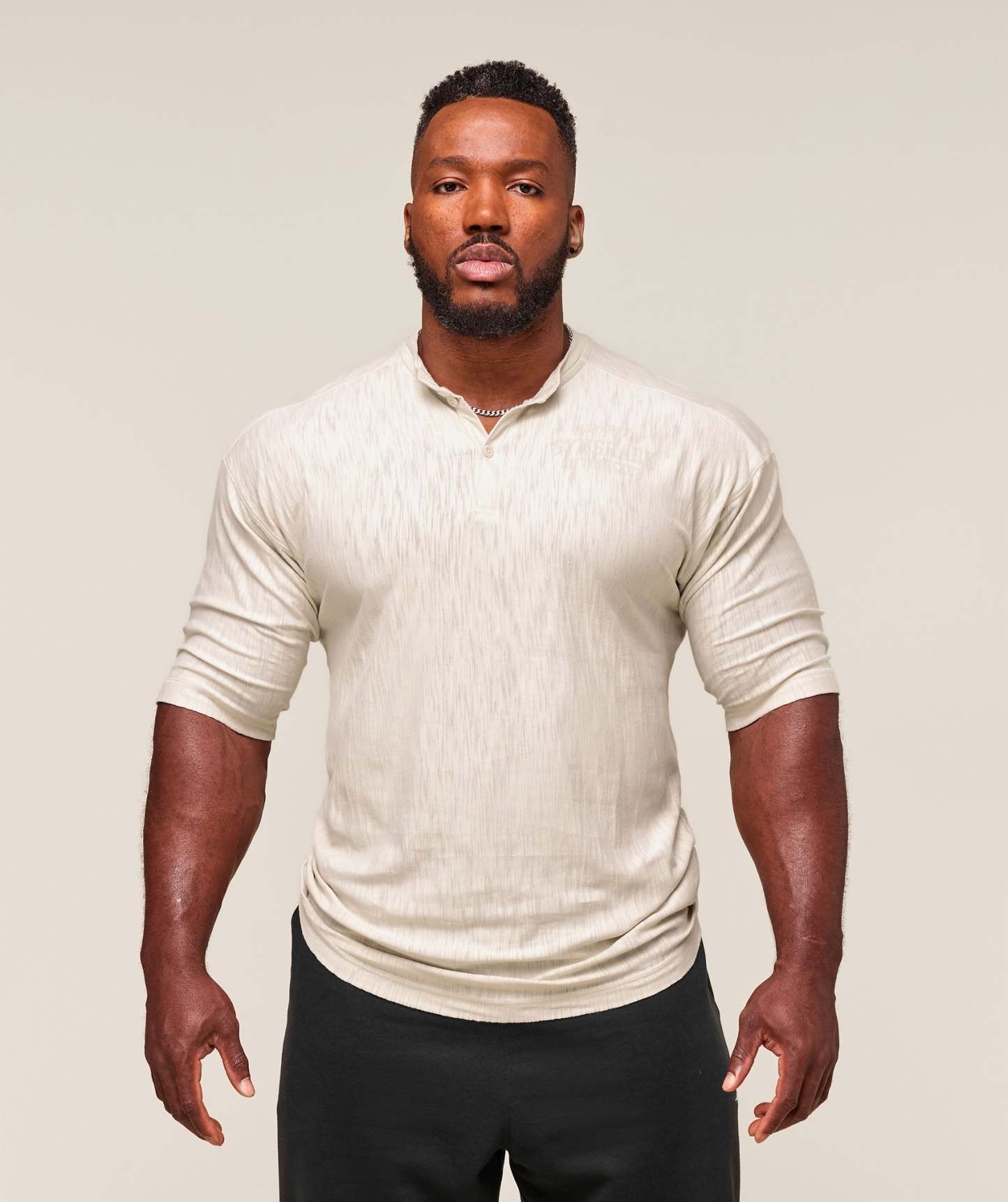 • Henley style that looks sick in and out of the gym